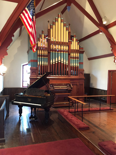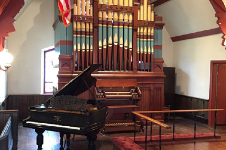The church is home to two period appropriate instruments: an 1895 Steinway baby grand piano and an 1883 Hook and Hastings tracker pipe organ. Both of these instruments have been fully restored within the last decade.
